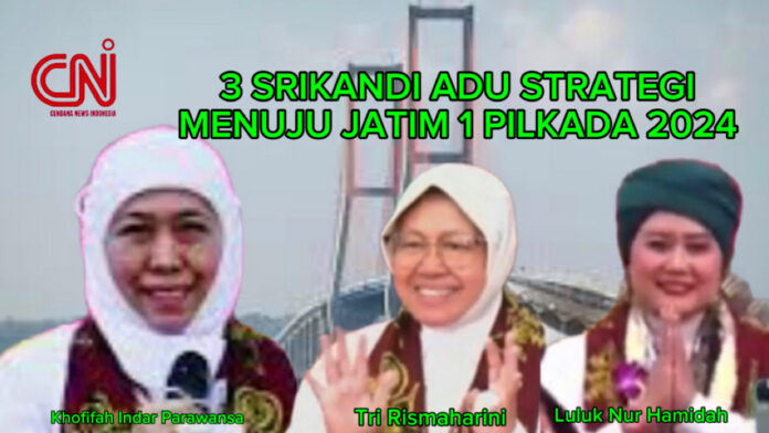 Jawa Timur, CNI – Pemilihan Gubernur dalam Pilkada Jawa Timur 2024 menghadirkan pertarungan antara tiga perempuan. Mereka adalah Khofifah Indar Parawansa, Tri Rismaharini, dan Luluk Nur Hamidan. Ketiganya sudah mendaftar untuk bertempur di pemilihan kepala daerah Jawa Timur atau Pilkada Jatim 2024.