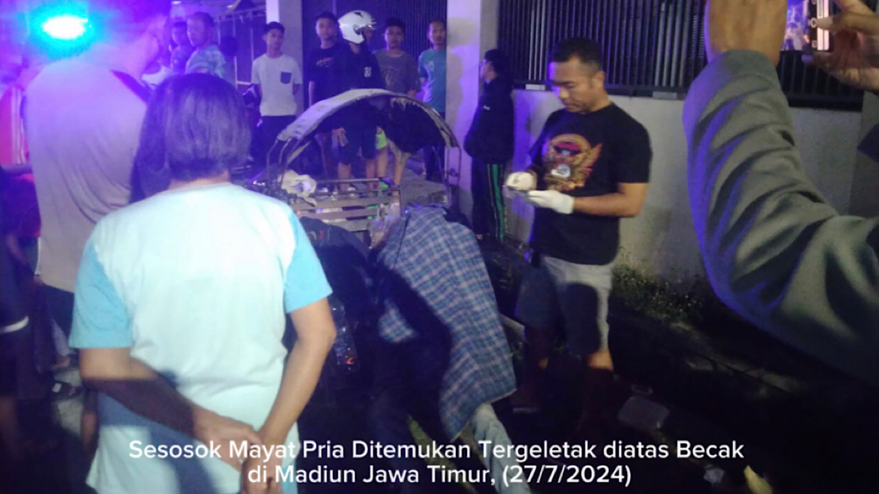 MADIUN, CNI (CendanaNewsIndonesia.com) – Malam-malam, warga Kota Madiun, Jawa Timur, digegerkan adanya penemuan sesosok mayat yang tergeletak di atas becak sedang parkir, Sabtu (27/7/2024).
