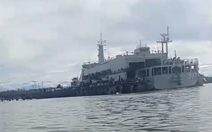 MADIUN, CNI – Gerilyawan TPNPB-OPM memonitor pergerakan KRI Teluk Calang 524 yang bersandar dan menurunkan pasukan TNI di Pelabuhan Poumako, Timika, Kabupaten Mimika, Provinsi Papua Tengah, pada Sabtu (12/04/2025).