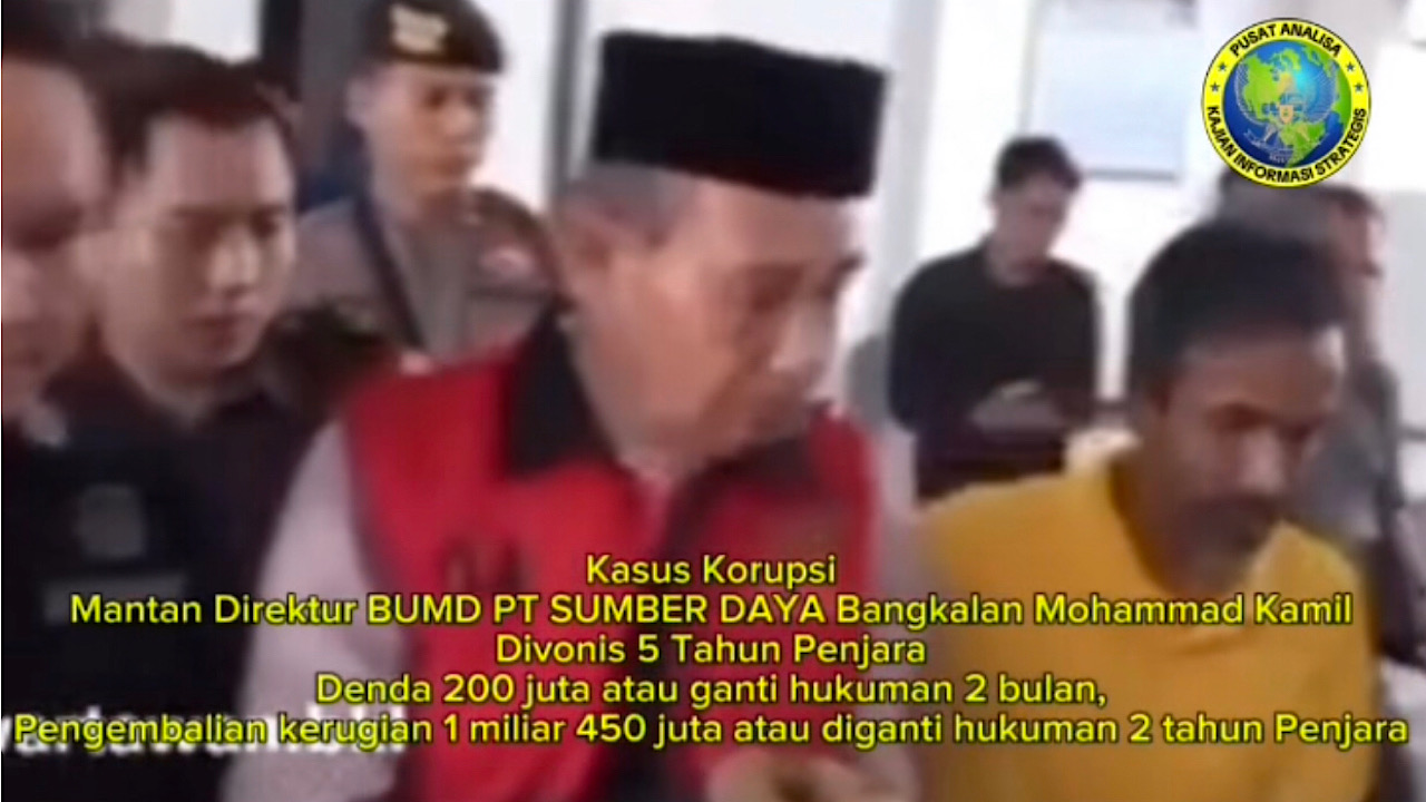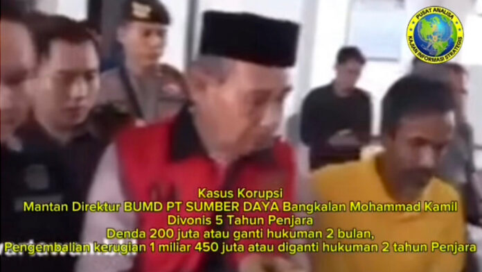 BANGKALAN, CNI – Majelis Hakim Pengadilan Tindak Pidana Korupsi (Tipikor) Surabaya di jalan Raya Juanda No. 82-84 Sidoarjo, Jawa Timur memvonis mantan Direktur Utama Badan Usaha Milik Daerah (BUMD) PT. Sumber Daya Moh Kamil dengan putusan 5 tahun, 6 bulan penjara ditambah denda Rp.200 juta subsider 2 bulan kurungan.
