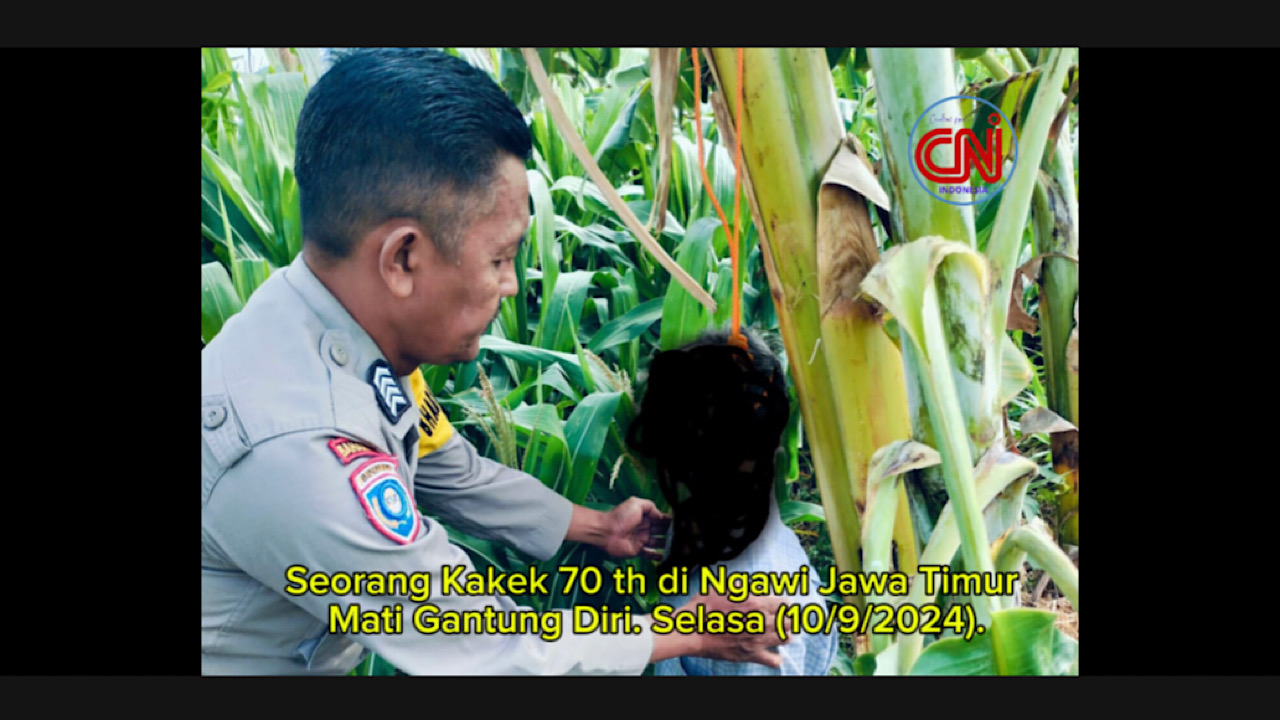 NGAWI, CNI – Seorang kakek berusia 70 tahun warga Ngawi, Jawa Timur, menyudahi hidup gantung diri, Selasa (10/9/2024). Praktik cabut nyawa yang tidak dibenarkan itu menggunakan kaitan pohon pisang, di area sawahnya sendiri, Dusun Cepet, Desa/Kecamatan Kendal.