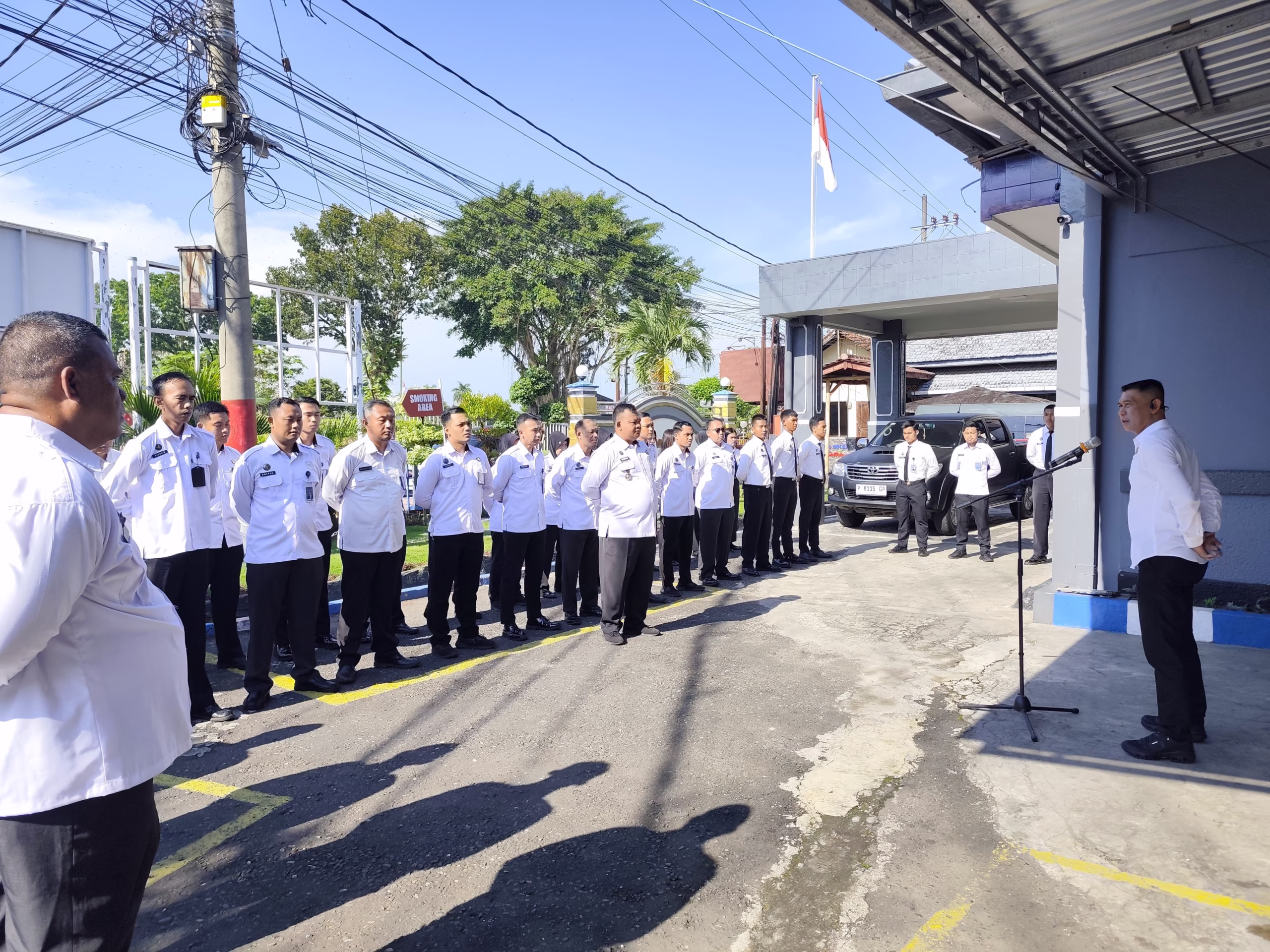 JEMBER-Kepala Lembaga Pemasyarakatan (Kalapas) Kelas IIA Jember, RM. Kristyo Nugroho, memimpin apel pagi pegawai yang diikuti oleh pejabat struktural dan staf, pada Senin (13/10/2025). Apel pagi ini menjadi momentum untuk memperkuat kedisiplinan dan sinergitas seluruh jajaran.