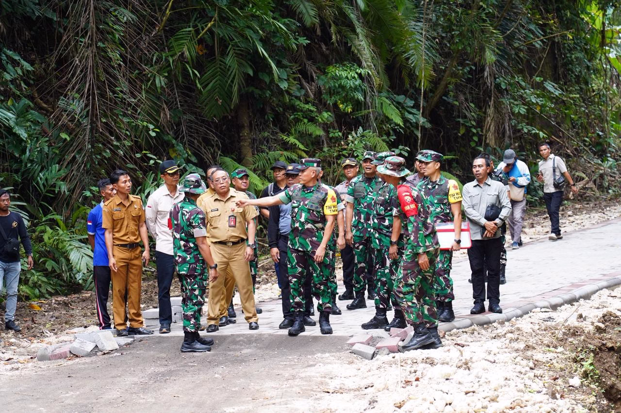 Usai menyerahkan bantuan sarana olahraga kepada Karang Taruna Desa Bongkasa Pertiwi, Aspers Kasad bersama rombongan meninjau langsung sejumlah titik sasaran fisik TMMD ke 126 untuk memastikan pelaksanaan kegiatan berjalan sesuai rencana.