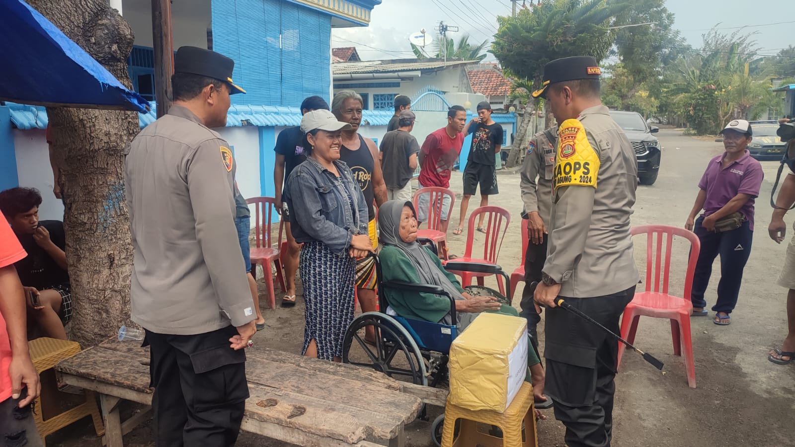 Dalam kesempatan ini, Kapolres Jembrana didampingi oleh Kapolsek Gilimanuk, KOMPOL I Komang Mulyadi, S.H., M.M., memberikan bantuan berupa paket sembako kepada warga yang membutuhkan, yaitu Ibu Marwati, seorang lansia yang mengalami sakit dan harus menggunakan kursi roda, yang merupakan warga lingkungan Penginuman, Gilimanuk.