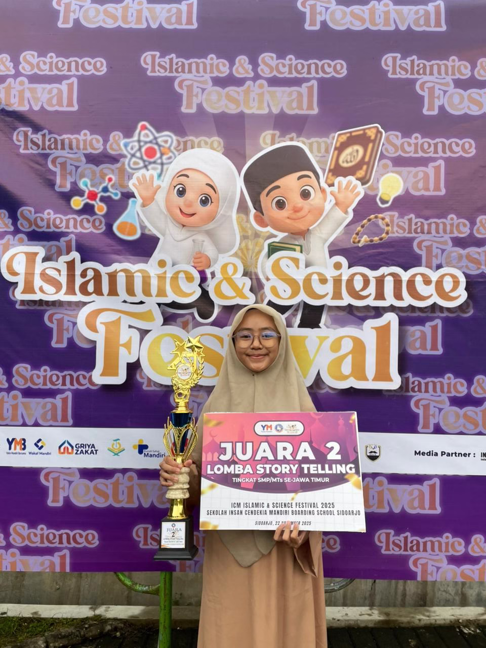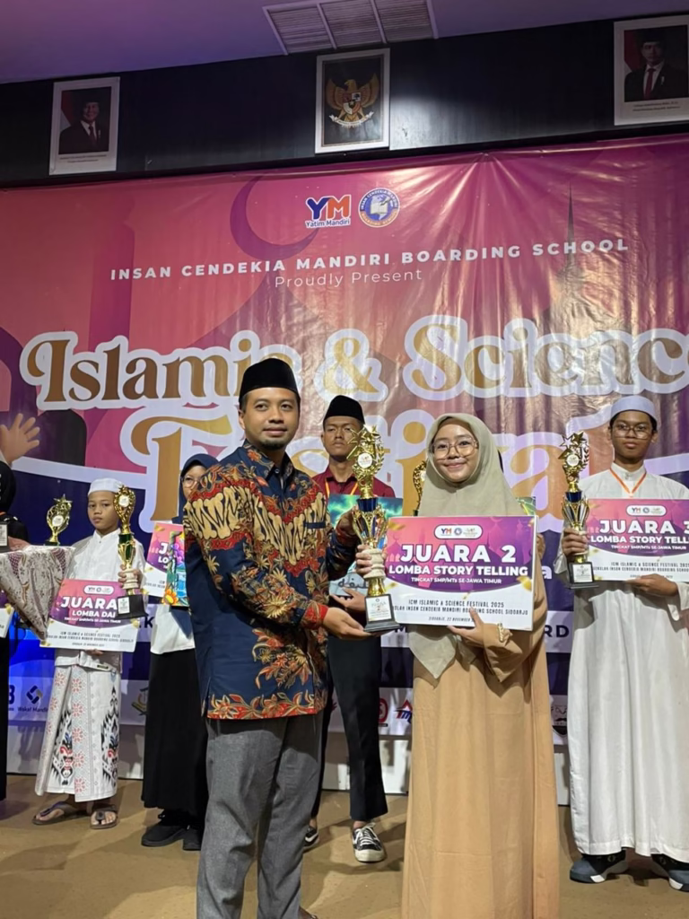Sidoarjo – Firyal Mazaya Archytas, pelajar asal Bali yang saat ini menempuh pendidikan di MTS Unggulan Amanatul Ummah, Mojokerto, berhasil menorehkan prestasi membanggakan dengan meraih Juara 2 dalam Lomba Story Telling tingkat SMP/MTS se-Jawa Timur pada ajang Islamic and Science Festival (ICM) 2025. Kompetisi bergengsi tersebut diselenggarakan di Insan Cendekia Mandiri Boarding School, Sidoarjo, pada 22 November 2025.