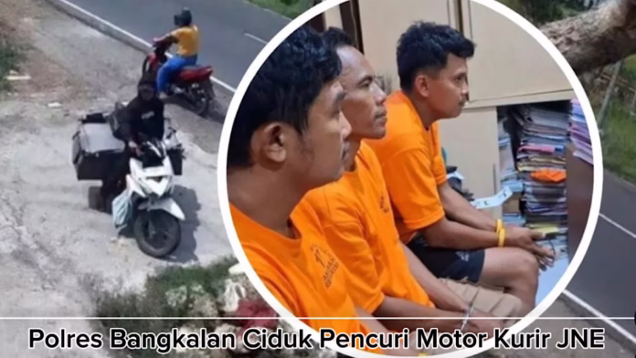BANGKALAN, CNI – Satreskrim Polres Bangkalan berhasil menangkap pelaku pencurian sepeda motor milik seorang kurir JNE yang raib saat korban tengah mengantar paket. Dalam pengungkapan kasus tersebut, polisi tidak hanya mengamankan pelaku utama, tetapi juga dua orang yang diduga sebagai penadah motor hasil curian.