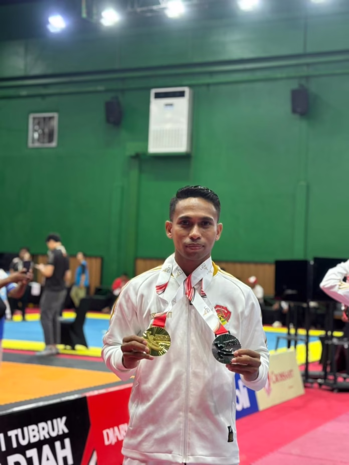 Denpasar, 22 Oktober 2025 – Prajurit Kodam IX/Udayana kembali menorehkan prestasi di bidang olahraga bela diri Kempo. Serda Mario Moniz Bere, prajurit Batalyon Armed 20/Bhadika Yudha, berhasil mengharumkan nama Kodam IX/Udayana dan Provinsi Nusa Tenggara Timur (NTT) pada ajang Pekan Olahraga (PON) Bela Diri Kudus 2025 yang berlangsung pada 18–22 Oktober 2025.
