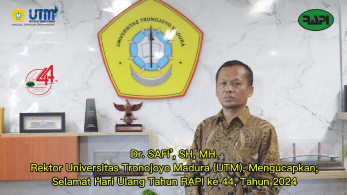 BANGKALAN, CNI – Rektor Universitas Trunojoyo Madura (UTM), Dr. Safi’, S.H., M.H, menyampaikan selamat hari ulang tahun (HUT) ke-44 Radio Antar Penduduk Indonesia (RAPI) Kabupaten Bangkalan.
