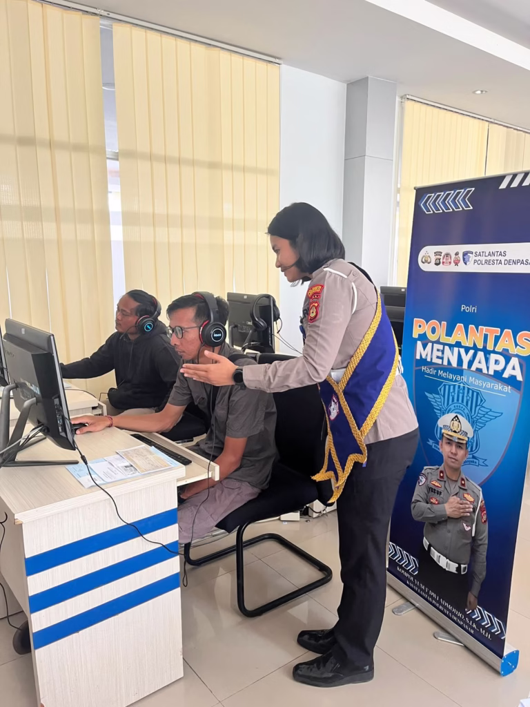 Denpasar – Dalam upaya meningkatkan kualitas pelayanan publik dan memberikan kemudahan bagi masyarakat, Satuan Lalu Lintas (Satlantas) Polresta Denpasar melalui program “Polantas Menyapa” melaksanakan kegiatan pembimbingan dan pengarahan kepada para pemohon Surat Izin Mengemudi (SIM) saat pelaksanaan tes teori, Jumat (31/10/2025).